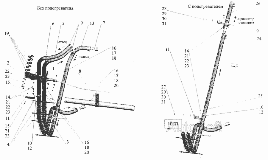 Установка підігрівача 103-1000022 Для МАЗ 103000 з ПЗ 14.8106000 або 141.8106000 » Двигун