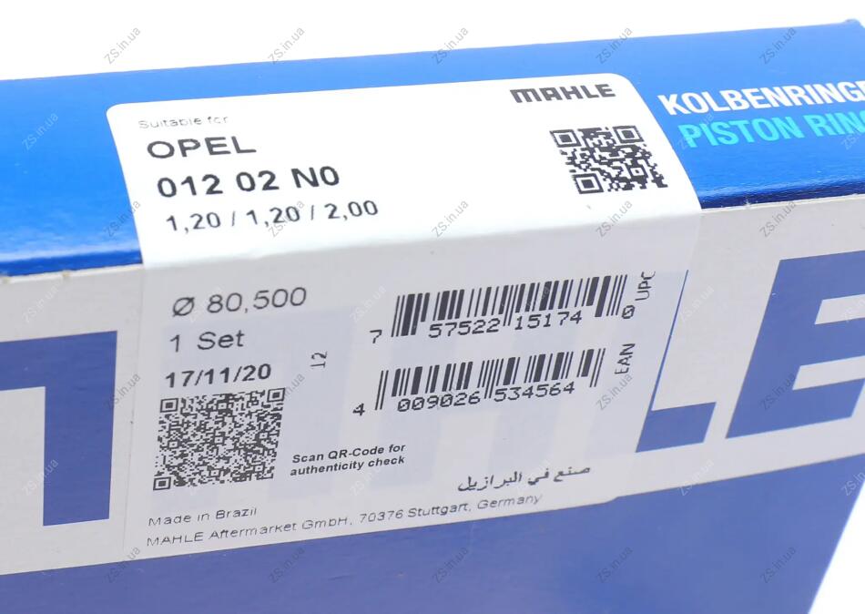 Кільця поршневі OPEL 80,50 X18XE1/Z18XE/Z18XEL (Mahle) Knecht/Mahle 012 02 N0