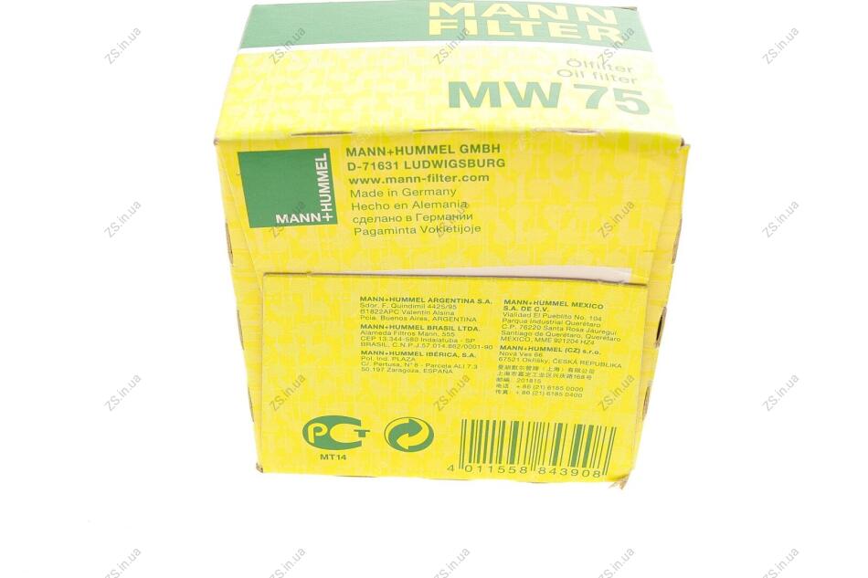 Масляний фiльтр MANN-FILTER MW75