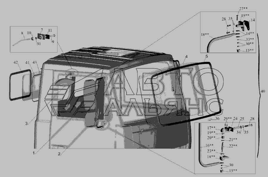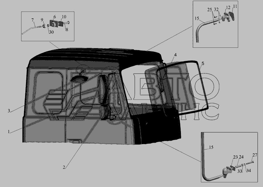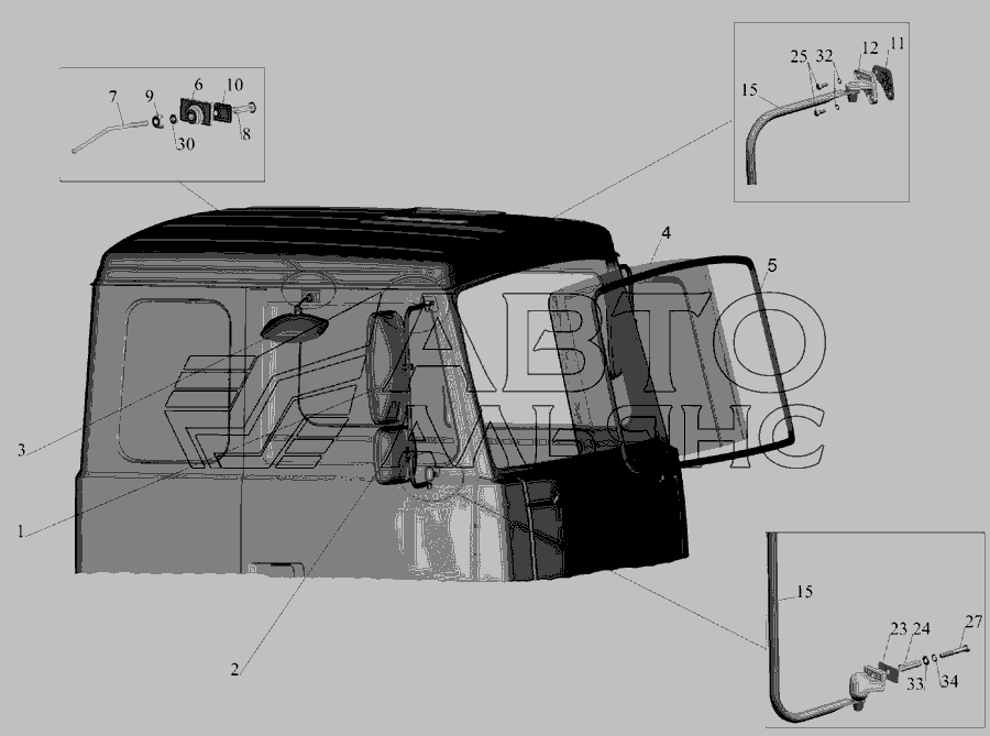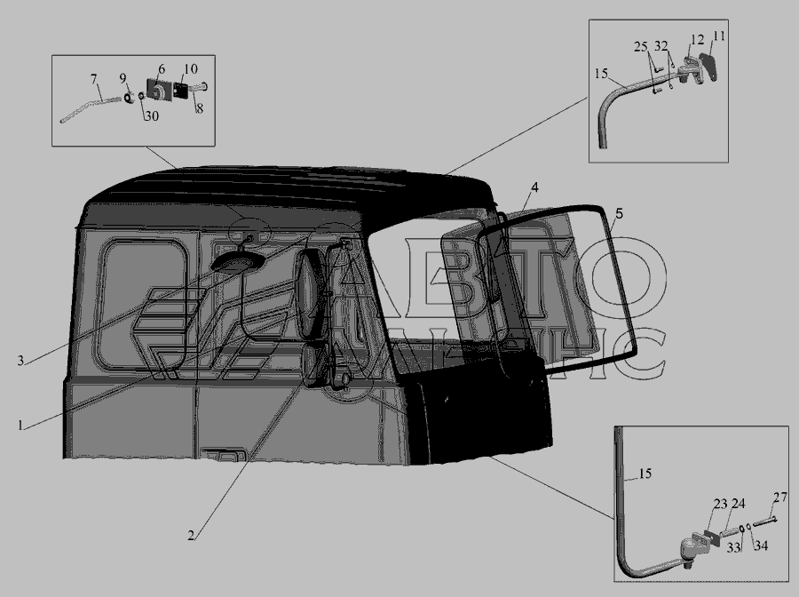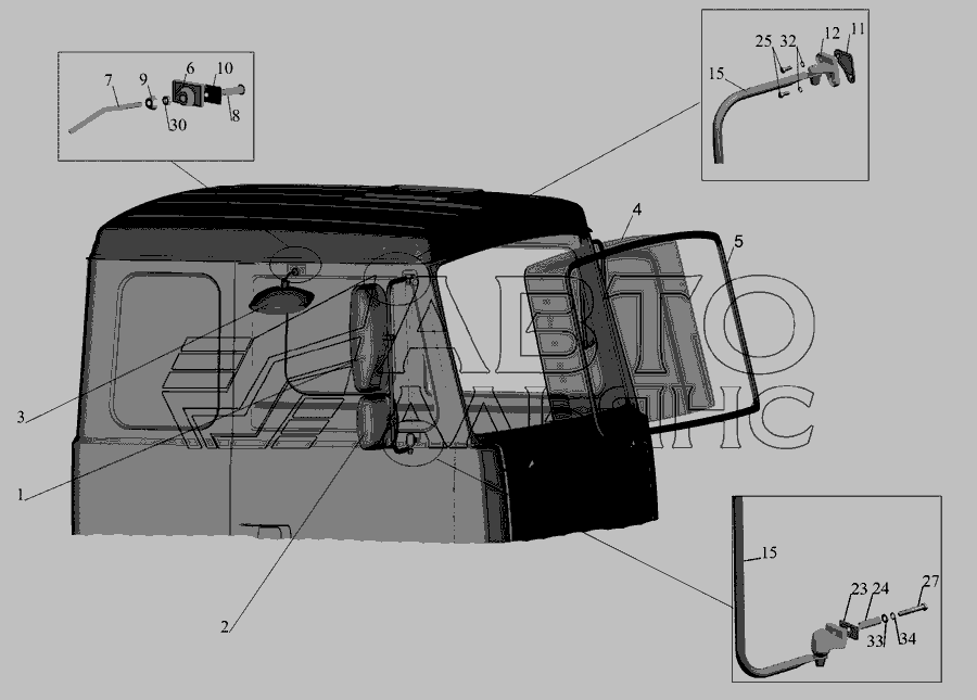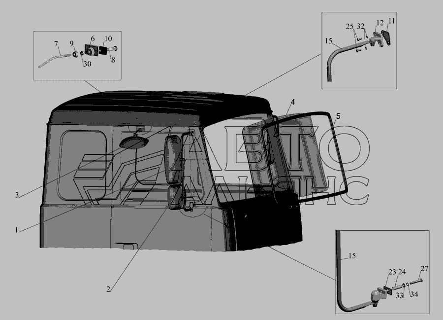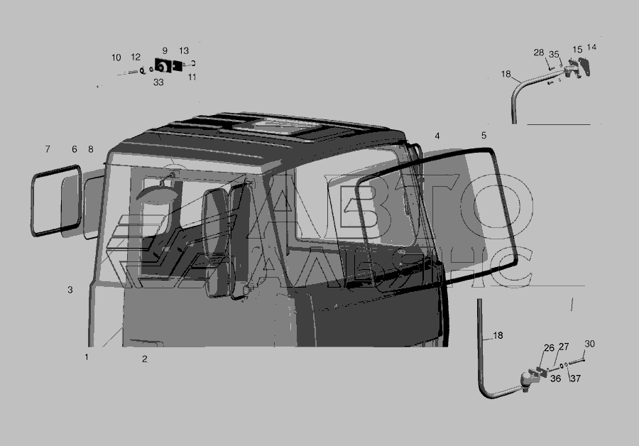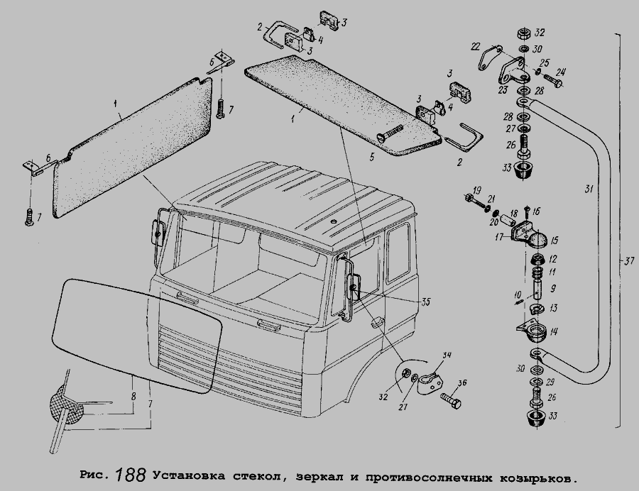 Установка скла вітрового, дзеркал, дзеркалоутримувачів, стекол задніх » Кабіна