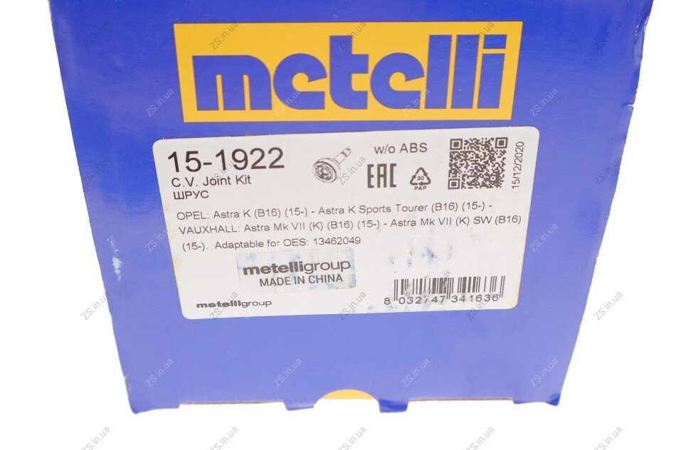 Шарнір рівних кутових швидкостей із елементами монтажу. METELLI 15-1922