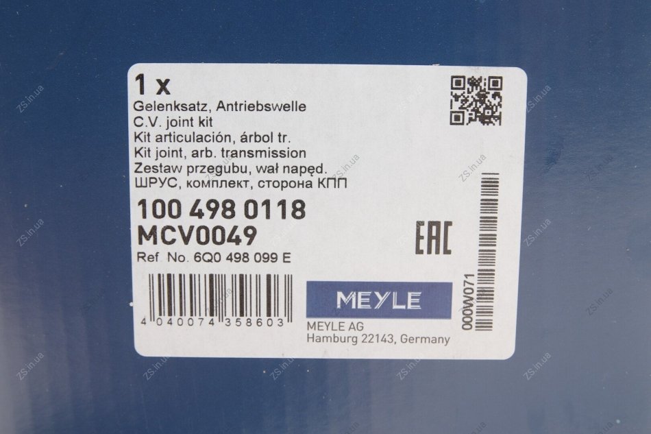 Аналоги "100 498 0118 MEYLE":