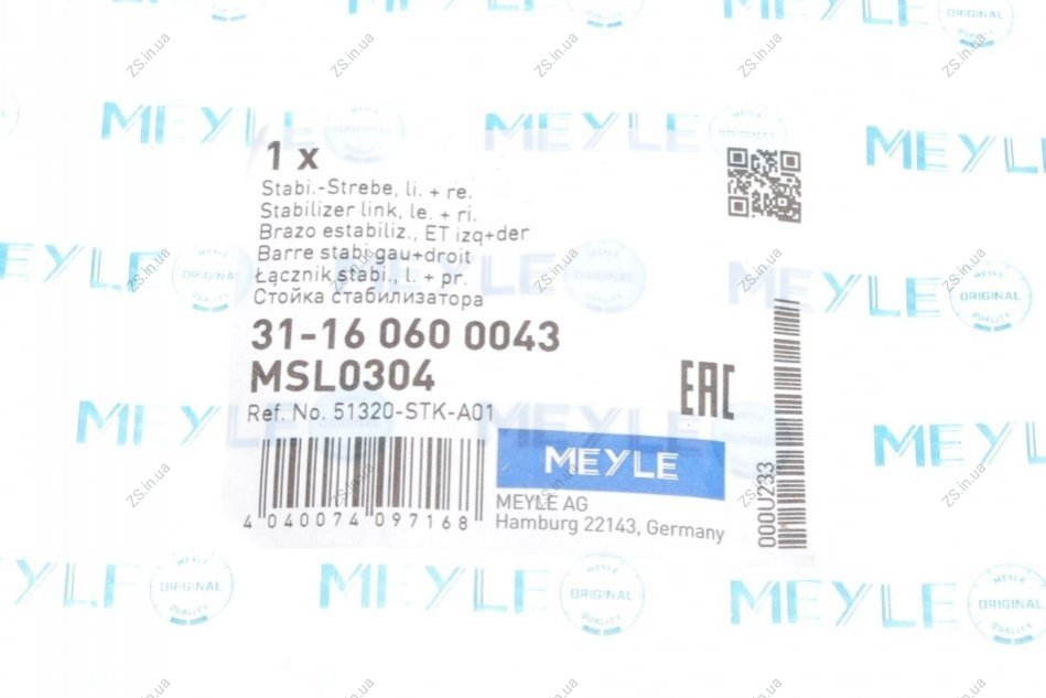 Тяга стабілізатора MEYLE 31-16 060 0043