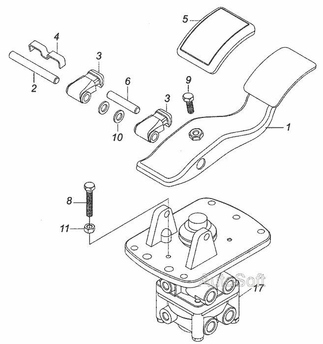 Педаль гальмівного крана ГТК н/о (без накладки) з пальцями у зборі (S.I.L.A. AC) S.I.L.A. 5320-3514012