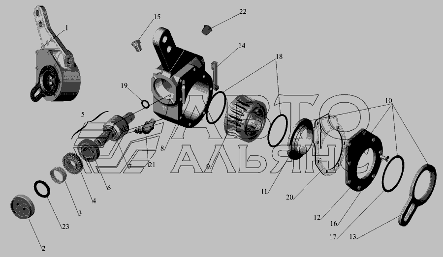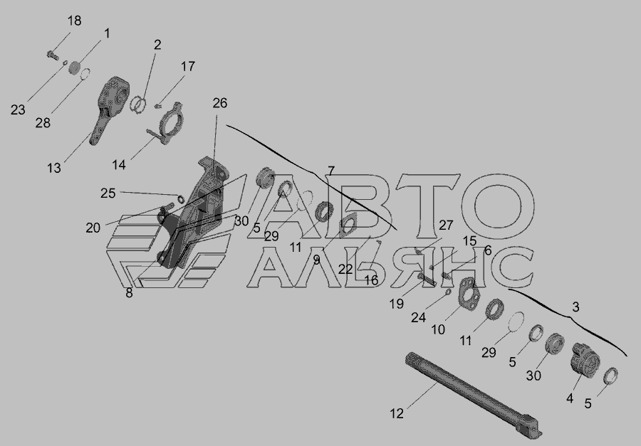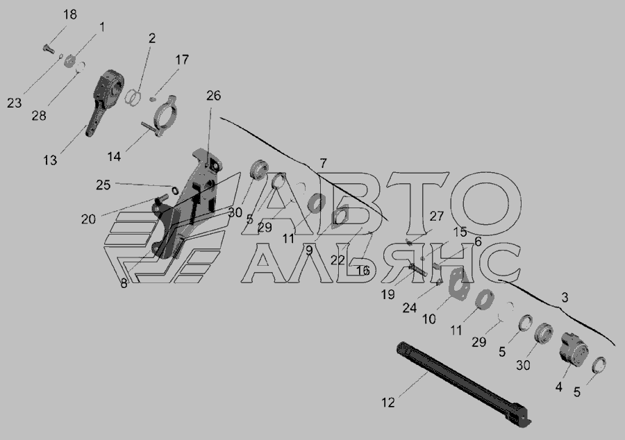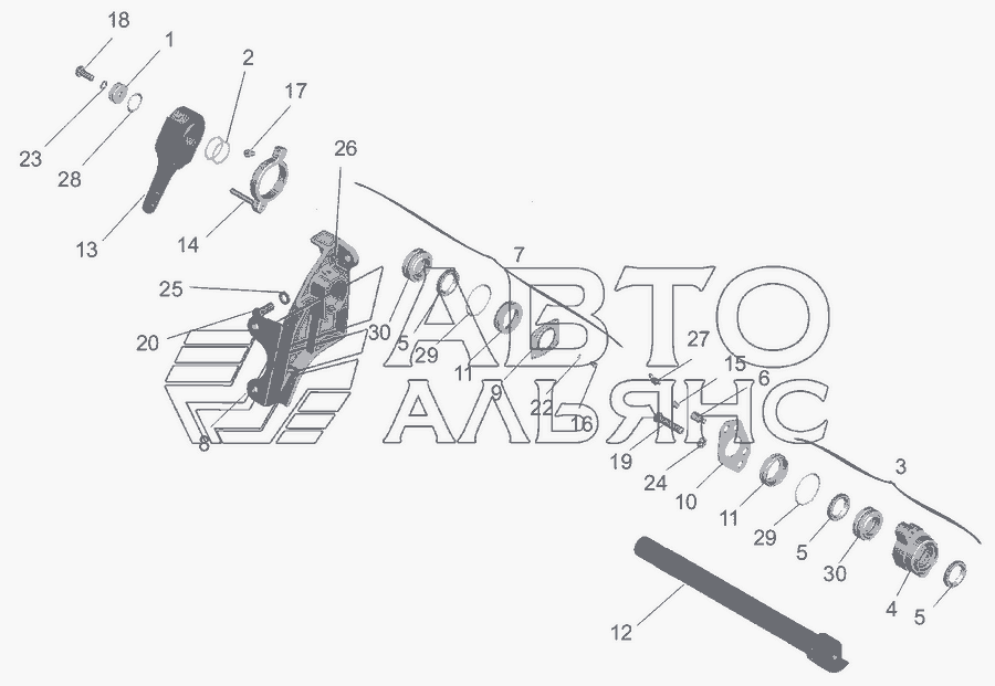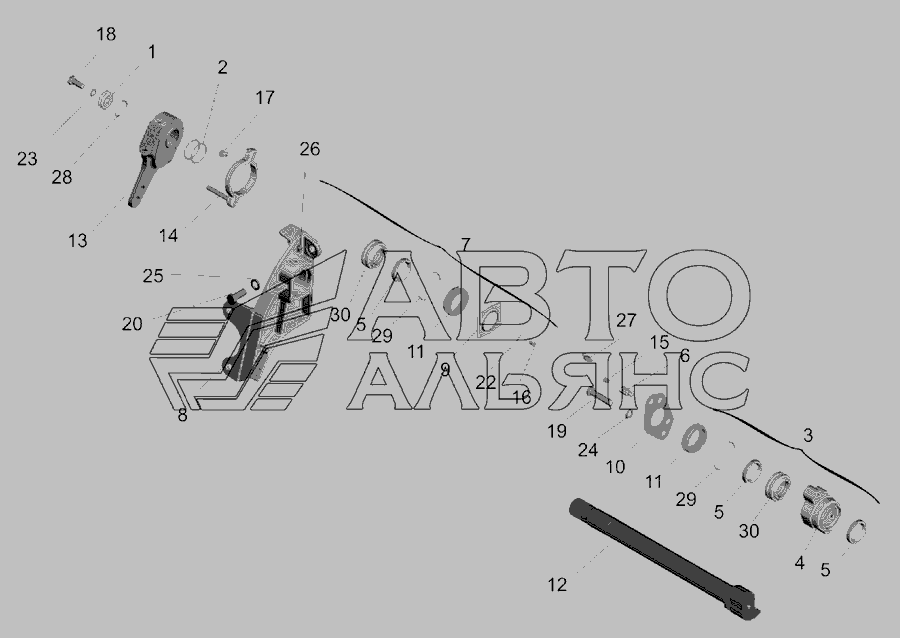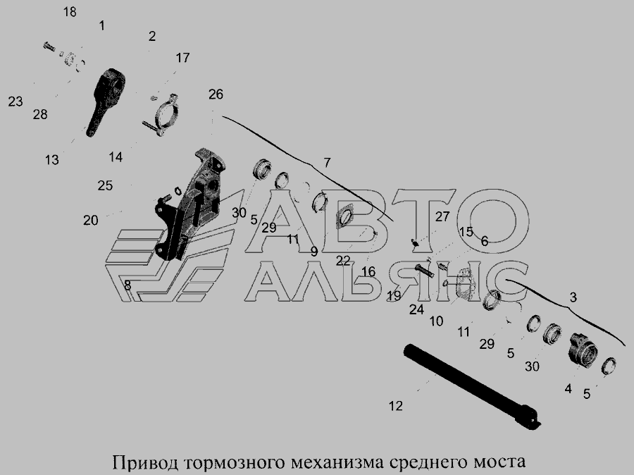 Привід гальмівного механізму середнього моста » Зчеплення