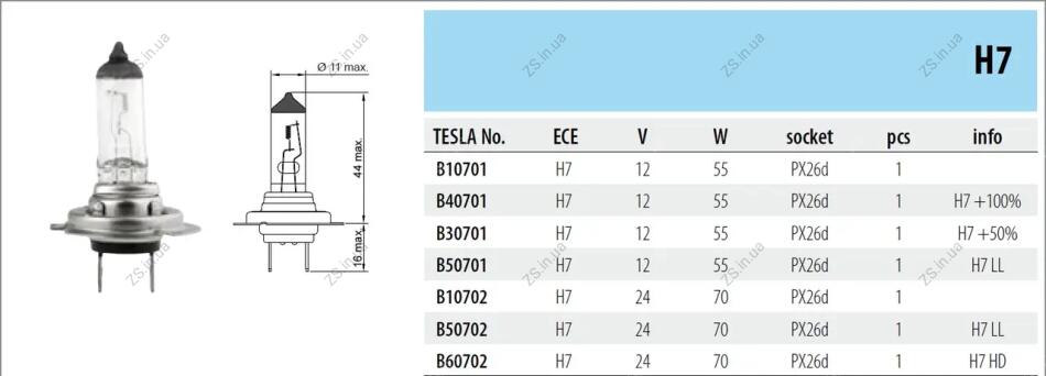 TS Лампа (H7, 12 V, 55 W, PX 26 d)LL TESLA B 50701