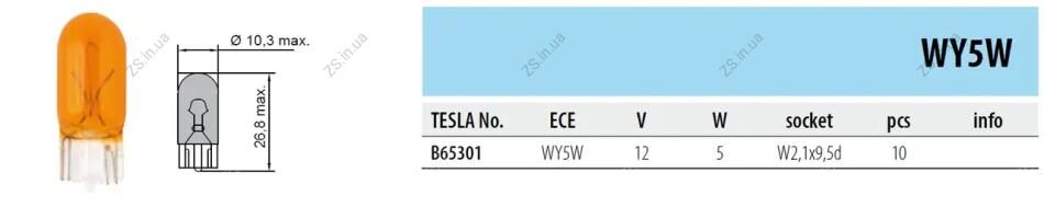 TS Лампа (WY5W, 12 V, W 2,1x9,5 d) TESLA B 65301